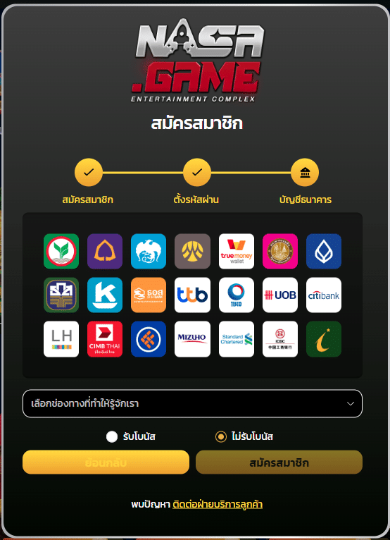 แนะนำวิธีการสมัครสมาชิก NASA.GAME